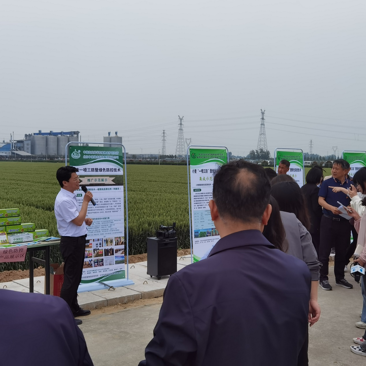 與會專家分別就小麥抗病蟲品種種植、小麥種子包衣“減量拌種”技術、小麥病害智能監(jiān)測與防控技術、麥田雜草“兩監(jiān)測三精準”綜合防治技術、植物免疫誘抗技術、小麥蚜蟲“推拉”防控技術、功能田間植物布局與天敵利用、“一加兩提”飛防施藥及霧滴飄移控制技術等8項核心技術進行宣講介紹;對小麥“一噴三防”示范試驗及其化學、生物農(nóng)藥新品種進行了詳細的講解;并實地觀摩了小麥新品種科林618。