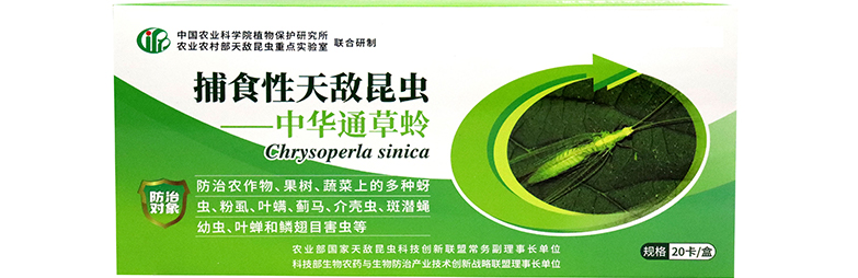 中華通草蛉是農(nóng)作物、果樹(shù)、蔬菜上多種蚜蟲(chóng)、粉虱、葉螨、薊馬、介殼蟲(chóng)、斑潛蠅幼蟲(chóng)、葉蟬和鱗翅目害蟲(chóng)卵及低齡幼蟲(chóng)的重要天敵。其幼蟲(chóng)和成蟲(chóng)均可捕食防治對(duì)象,是害蟲(chóng)生物防治中具有開(kāi)發(fā)潛力和應(yīng)用價(jià)值的一種天敵昆蟲(chóng)。