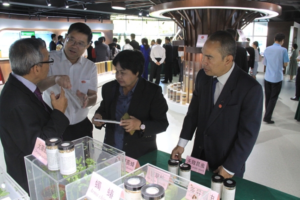 在植物保護(hù)研究所展臺,周雪平所長結(jié)合實物向來賓介紹了我所研發(fā)的阿泰靈、武夷菌素、芽孢桿菌、木霉制劑、綠僵菌制劑、白僵菌制劑、淡紫擬青霉和粉紅粘帚霉等生物農(nóng)藥類產(chǎn)品,以及瓢蟲、草蛉、蚜繭蜂、蠋蝽等天敵昆蟲產(chǎn)品和智利小植綏螨等捕食螨產(chǎn)品,這些產(chǎn)品成本不高,使用方便,沒有環(huán)境污染,還能有效控制病蟲害。馬來西亞總理代表團(tuán)對我所的生物農(nóng)藥及生物防治技術(shù)表現(xiàn)出濃厚興趣。